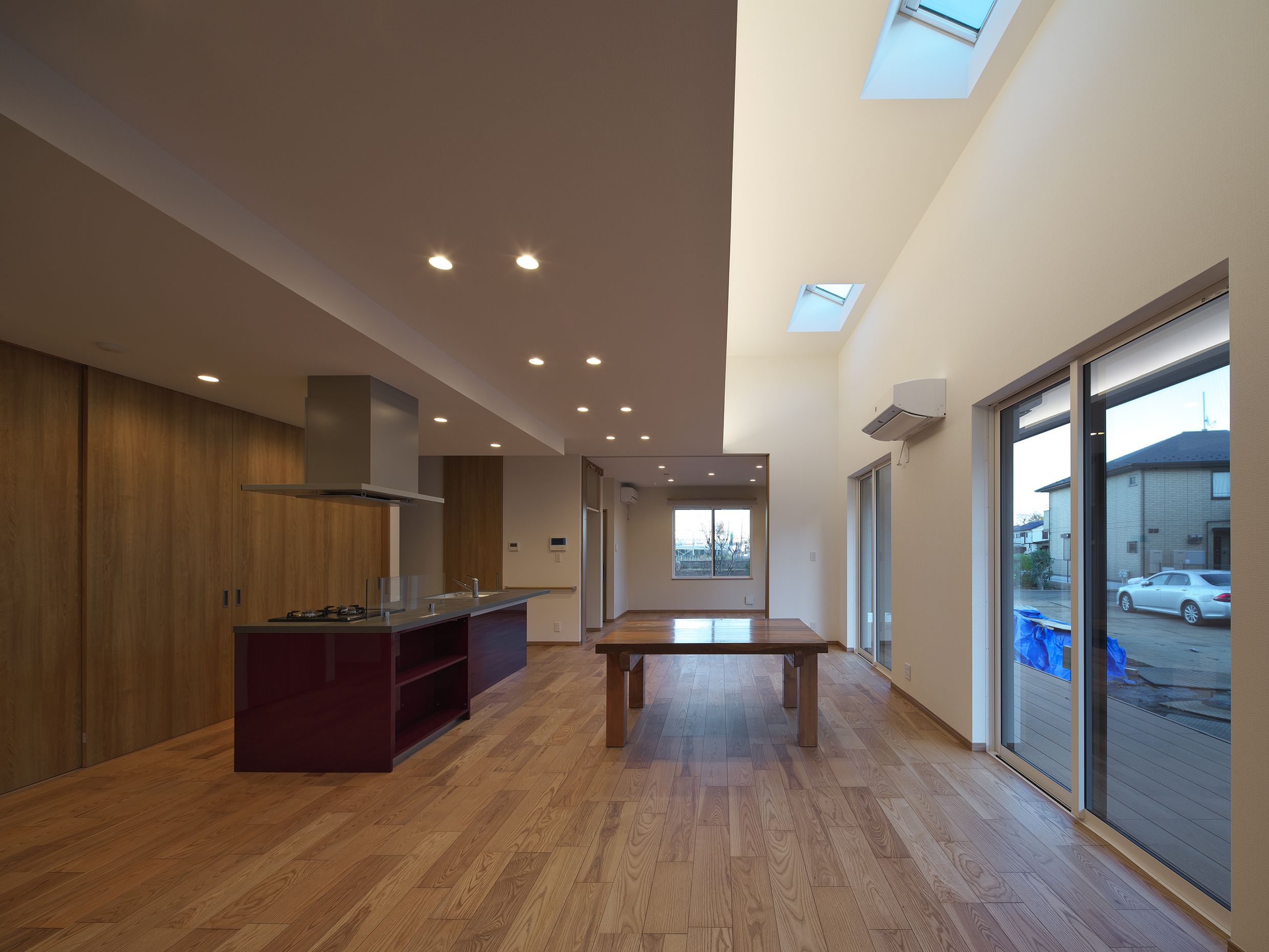 ▲一般部分の天井を2.6mとし、更に天井より日の光を取り込むための天窓を採用しました